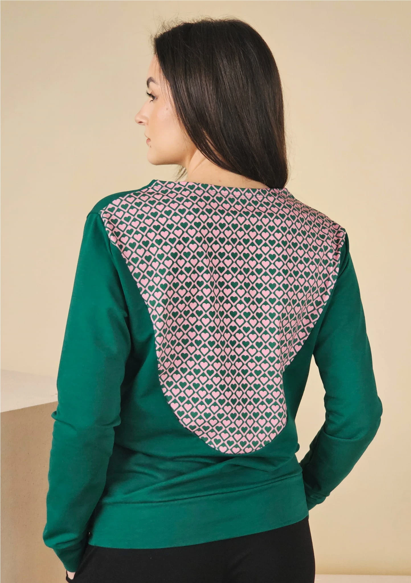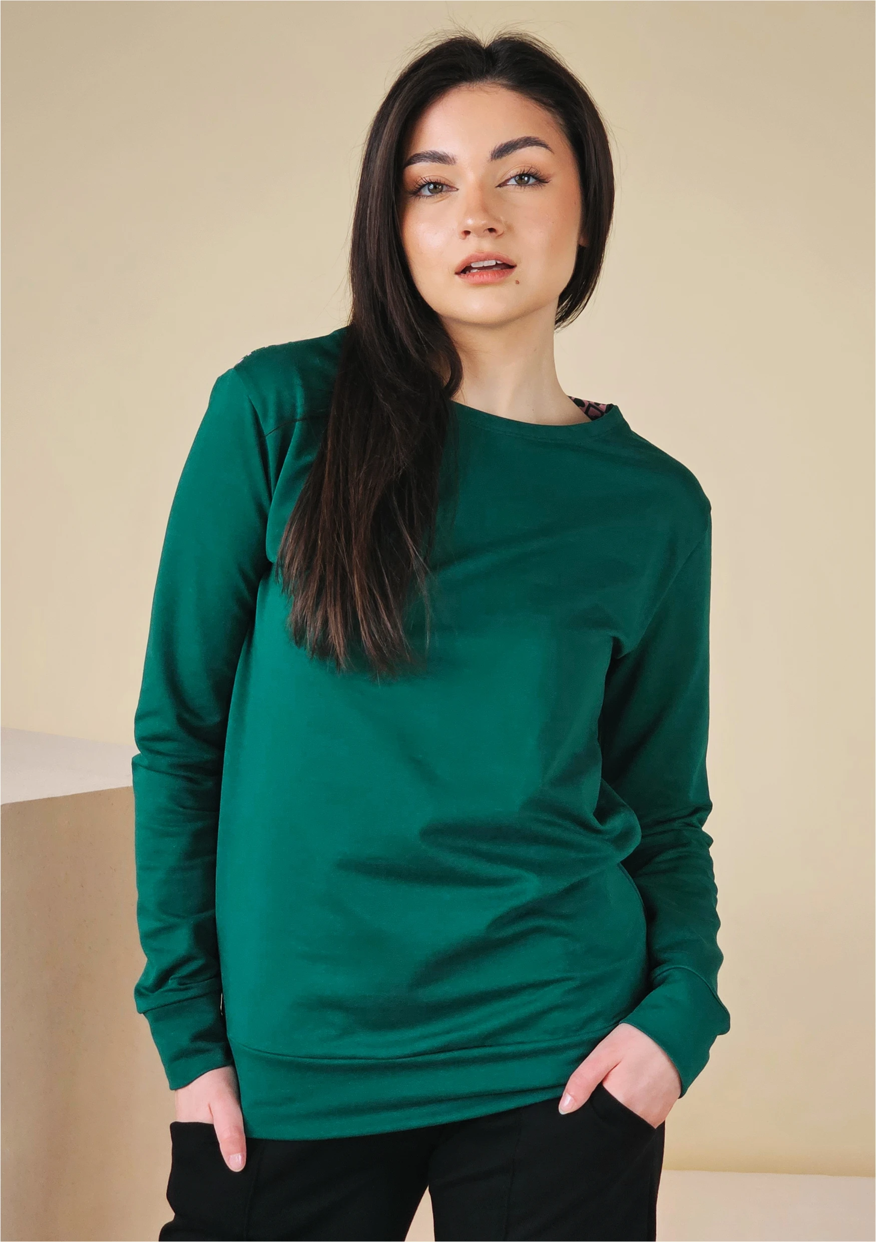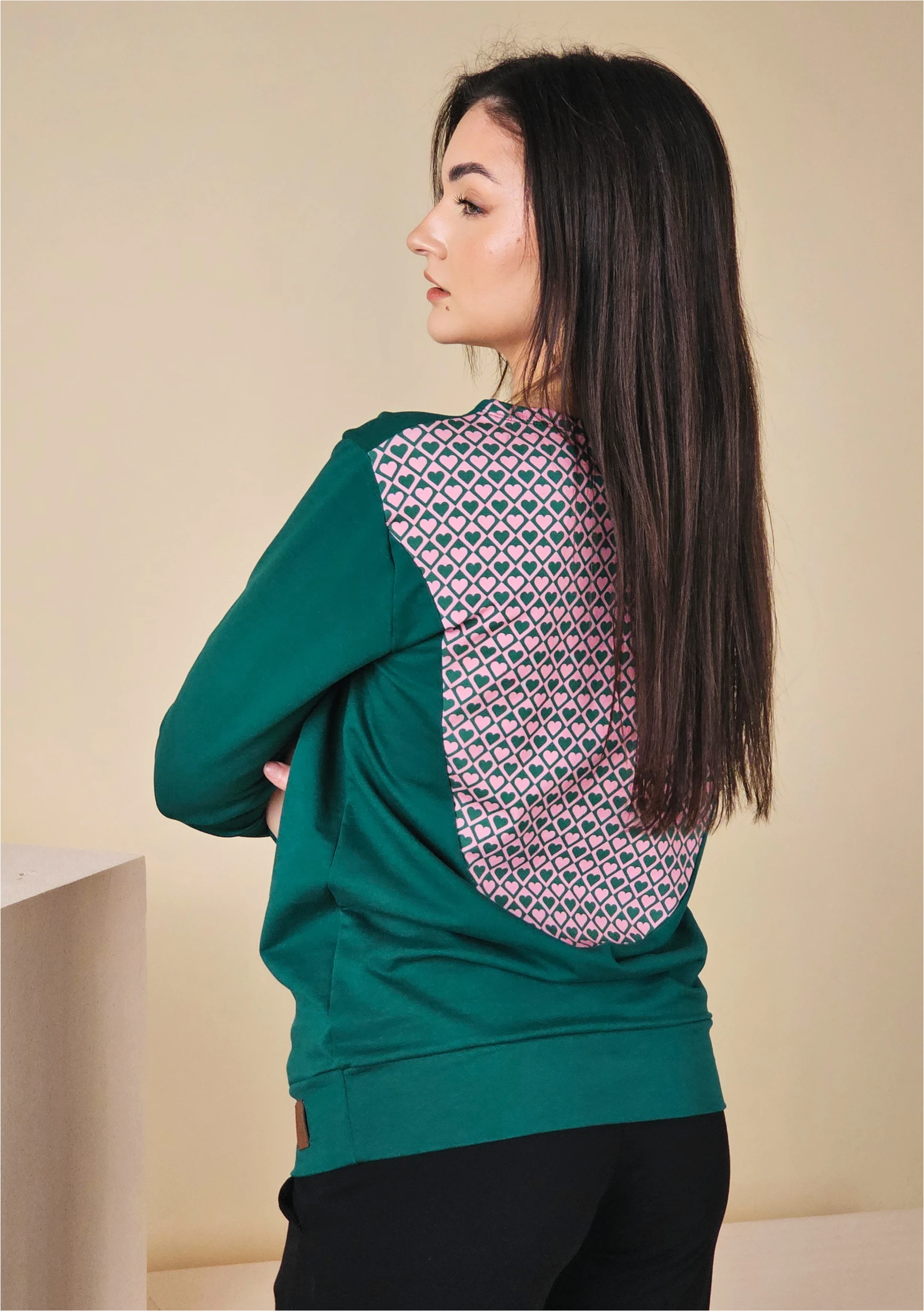 Bluza z kontrastową wstawką na plecach | REWERS butelkowa zieleń
