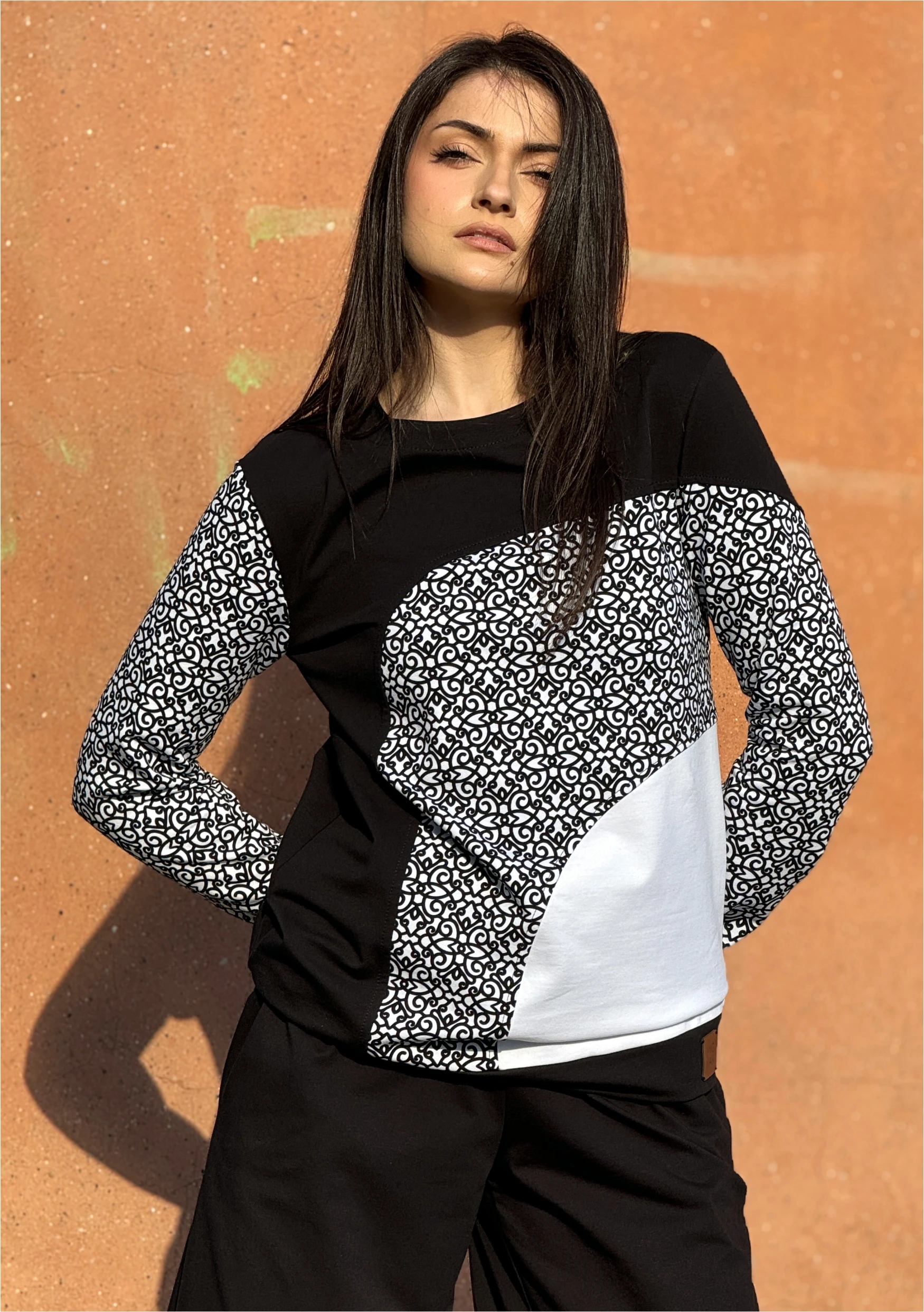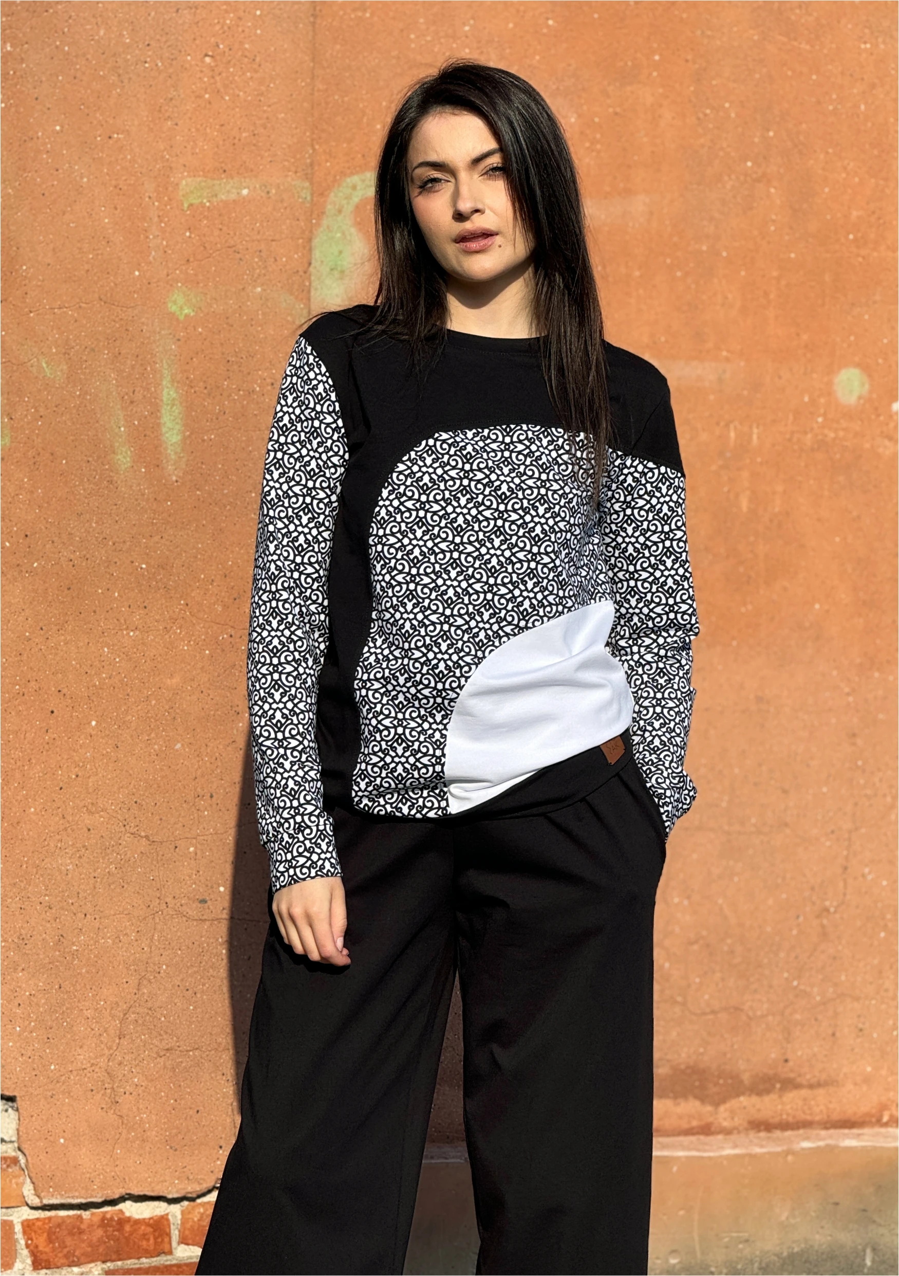 Bluza z łączonych materiałów | BRYZA czarno-biała