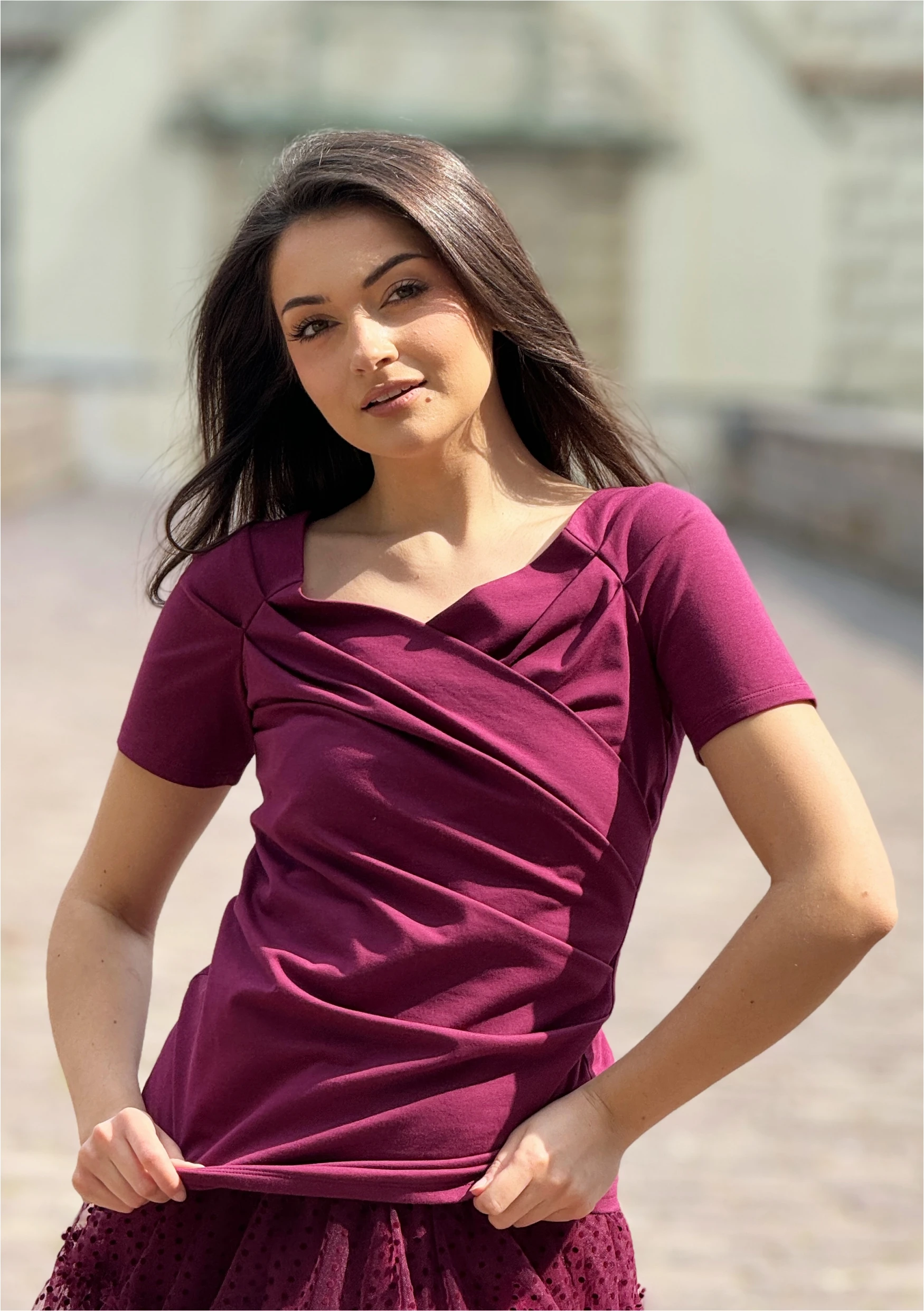 Bluzka z kopertowym dekoltem | MALAGA magenta purple