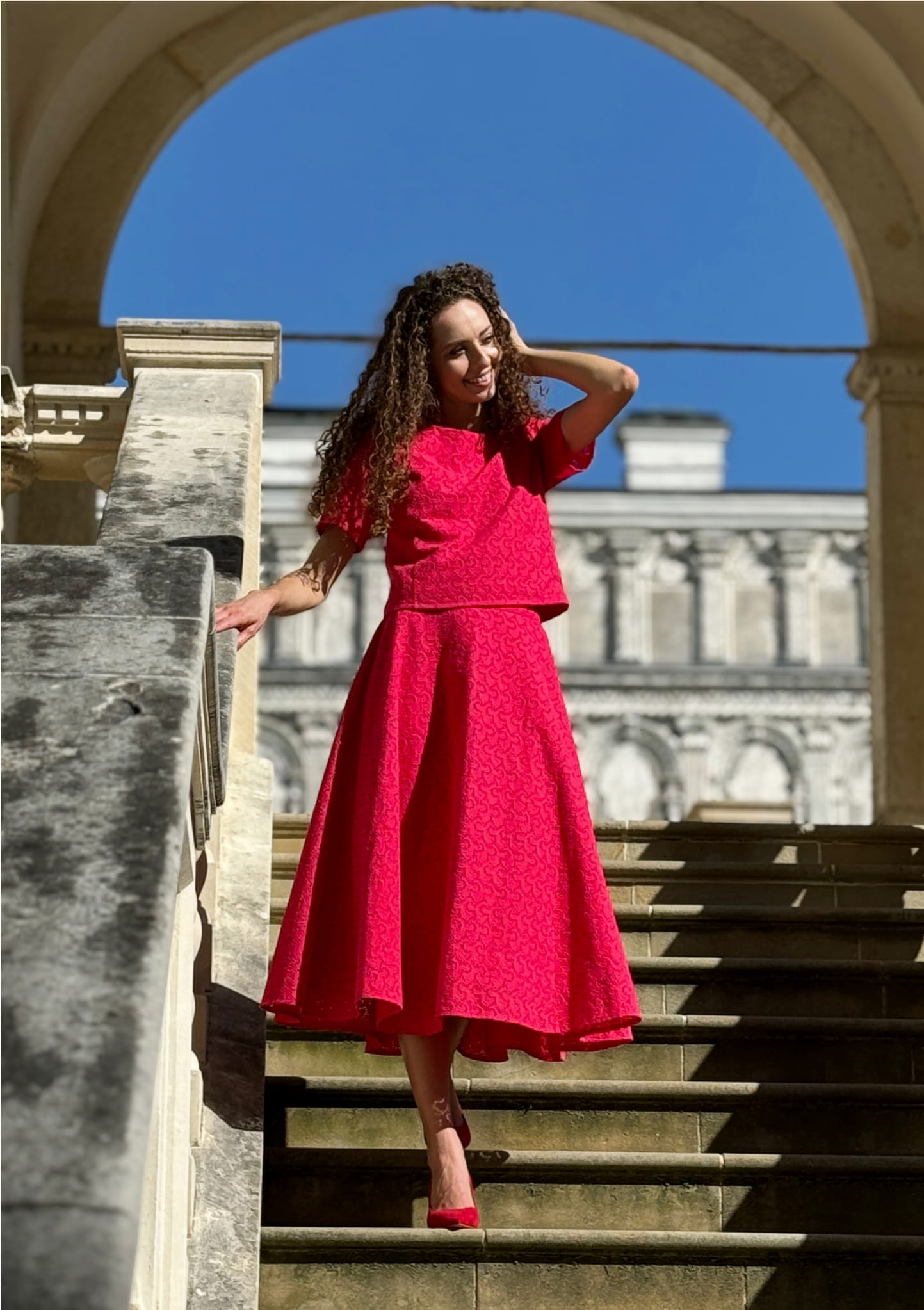 Komplet spódnica + top | AMALIA różowy